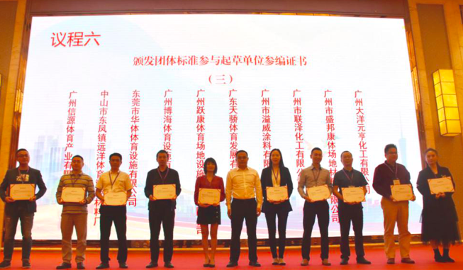 2020年11月24日,廣州市質(zhì)量強(qiáng)市工作領(lǐng)導(dǎo)小組辦公室牽頭舉行的運(yùn)動(dòng)場(chǎng)地合成材料面層產(chǎn)品質(zhì)量提升工作成果暨團(tuán)體標(biāo)準(zhǔn)發(fā)布會(huì)在番禺美麗豪酒店召開(kāi)。廣東省體育設(shè)施制造商協(xié)會(huì)承辦,廣州博海體育設(shè)施有限公司等企業(yè)代表出席了大會(huì)。